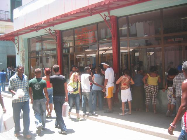 Today we were supposed to research the Internet availability in this part of Havana. And while most hotels claim to offer it, almost none actually do. Our hotel had a big sign advertising Internet access for $6 an hour and in U.S. funds too. The dollar is no longer officially accepted in Cuba and hasn't been since 2004. But that didn't really matter as the Internet was "broken" and we were directed to the nearby Florida Hotel. Well, it wasn't working there either. We were pointed to yet another hotel and this one actually had three terminals inside a bar upstairs where various tourists were coming and going to check their email. I set up a temporary Hotmail account to keep in touch with some people back home. We did a few experiments on the system and connection they had here. In short, it didn't take very long to ascertain that what we were using was not what the average Cuban citizen could use.