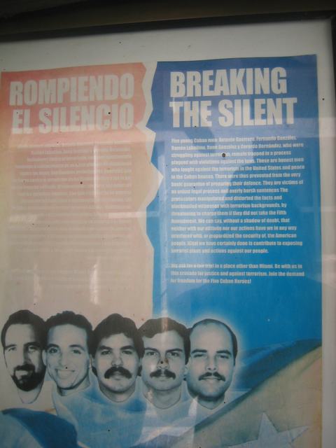 Posters about The Cuban Five can be found throughout the city. These are five Cuban men serving life sentences in the United States after being accused of spying in 2001. Their defenders claim they were simply monitoring the actions of Miami-based terrorist groups who have killed over 3,000 Cubans in the last 40 years.