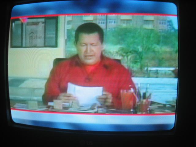 During the news and throughout other programs, the latest words of Venezuelan leader Hugo Chavez (who hosts his own television program in his country) are always given serious attention.